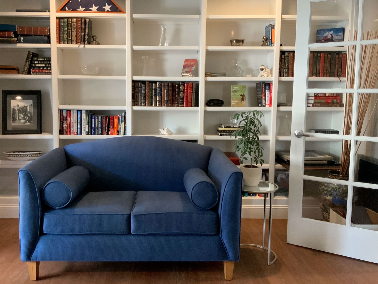 A big shout out to Sherrie Swass Interior Design for my beautiful new couch. Sherrie designed my room with a round cornered sectional to create an engaging space for the wine tastings I host in it. She also used a fabric that can be cleaned with soap and water! And the entire space was designed with FengShui placement in mind. I'm really delighted.